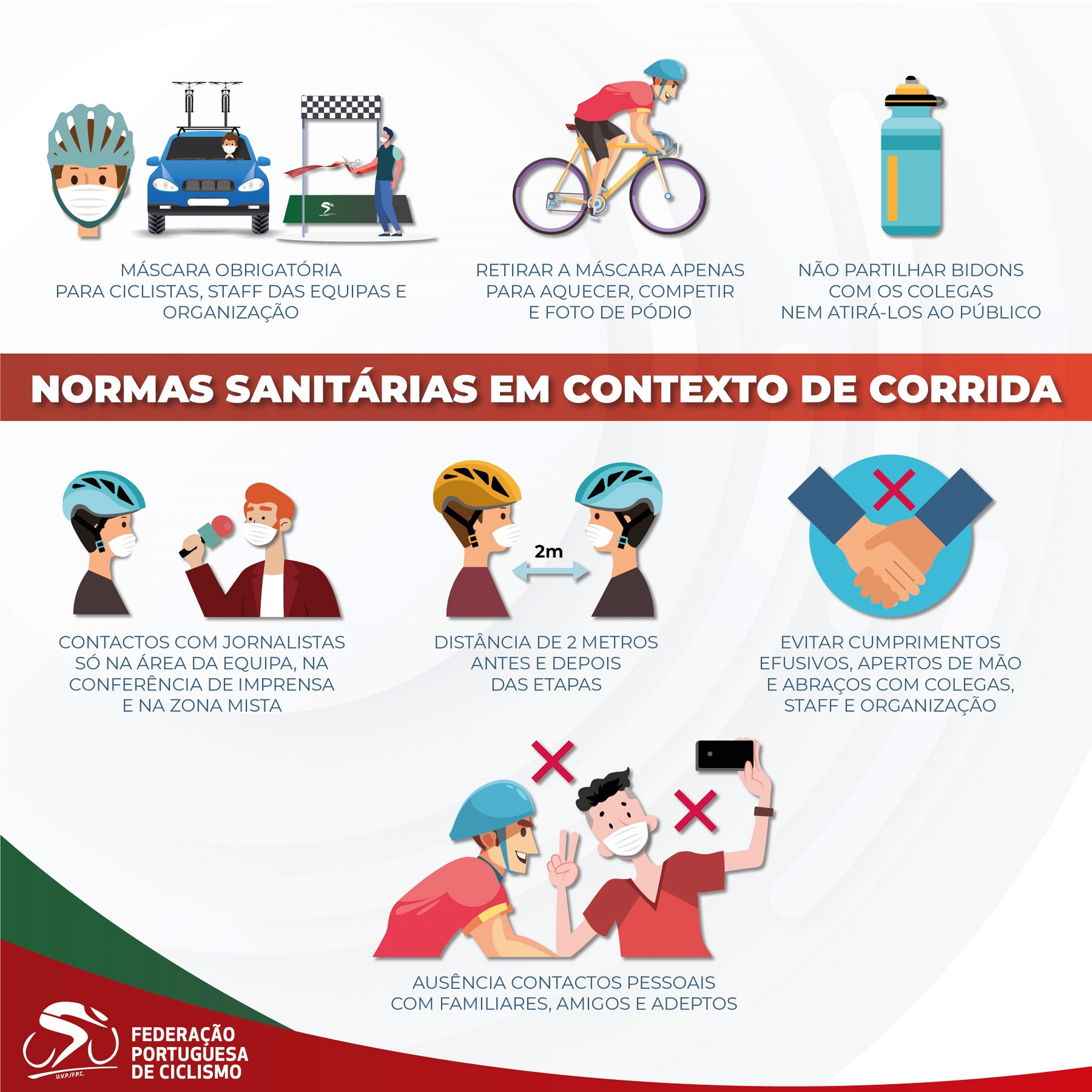 Os adeptos são convidados a seguir a corrida à distância, através das informações disponibilizadas em tempo real na página da Federação Portuguesa de Ciclismo na Internet. Aqueles que optem por assistir ao vivo deverão evitar as zonas de chegada e de partida, procurar locais sem aglomeração de público para ver a passagem dos corredores, manter distanciamento físico de dois metros face a outros adeptos, usar máscara de proteção certificada e evitar os incentivos orais aos atletas, privilegiando os aplausos.